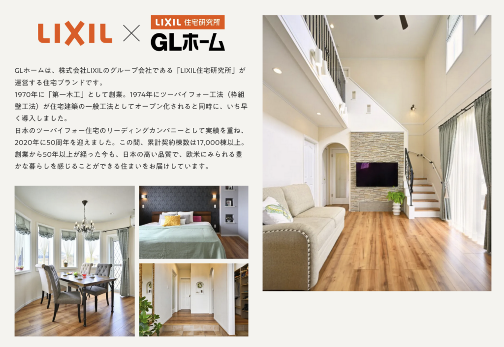 🏡「GLホーム」は、1970年に創業した株式会社LIXILのグループ会社である〈LIXIL住宅研究所〉が運営するフランチャイズシステムの住宅会社です。