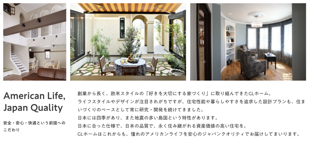 GLホーム」は海外の暮らしにある憧れの世界観と心地よさを一人ひとりの「好き」としてかたちにする家づくりと日本の四季や風土に合う性能で、安心して永く暮らせる住まいをご提供しております。
