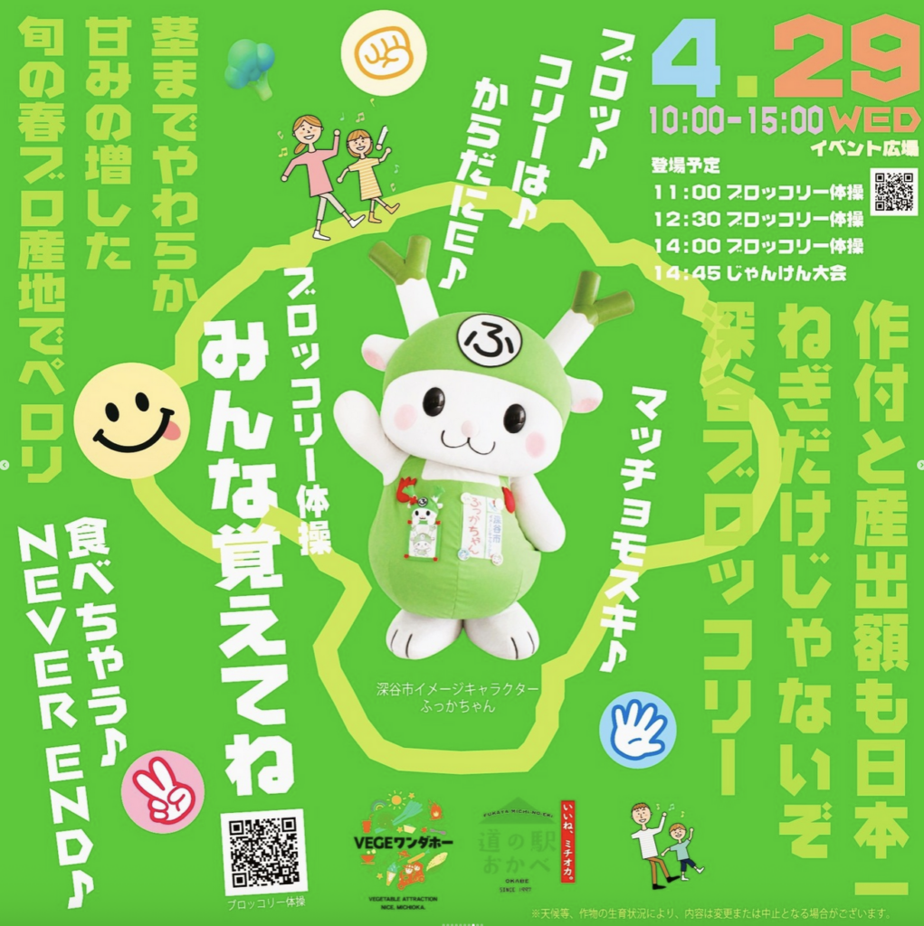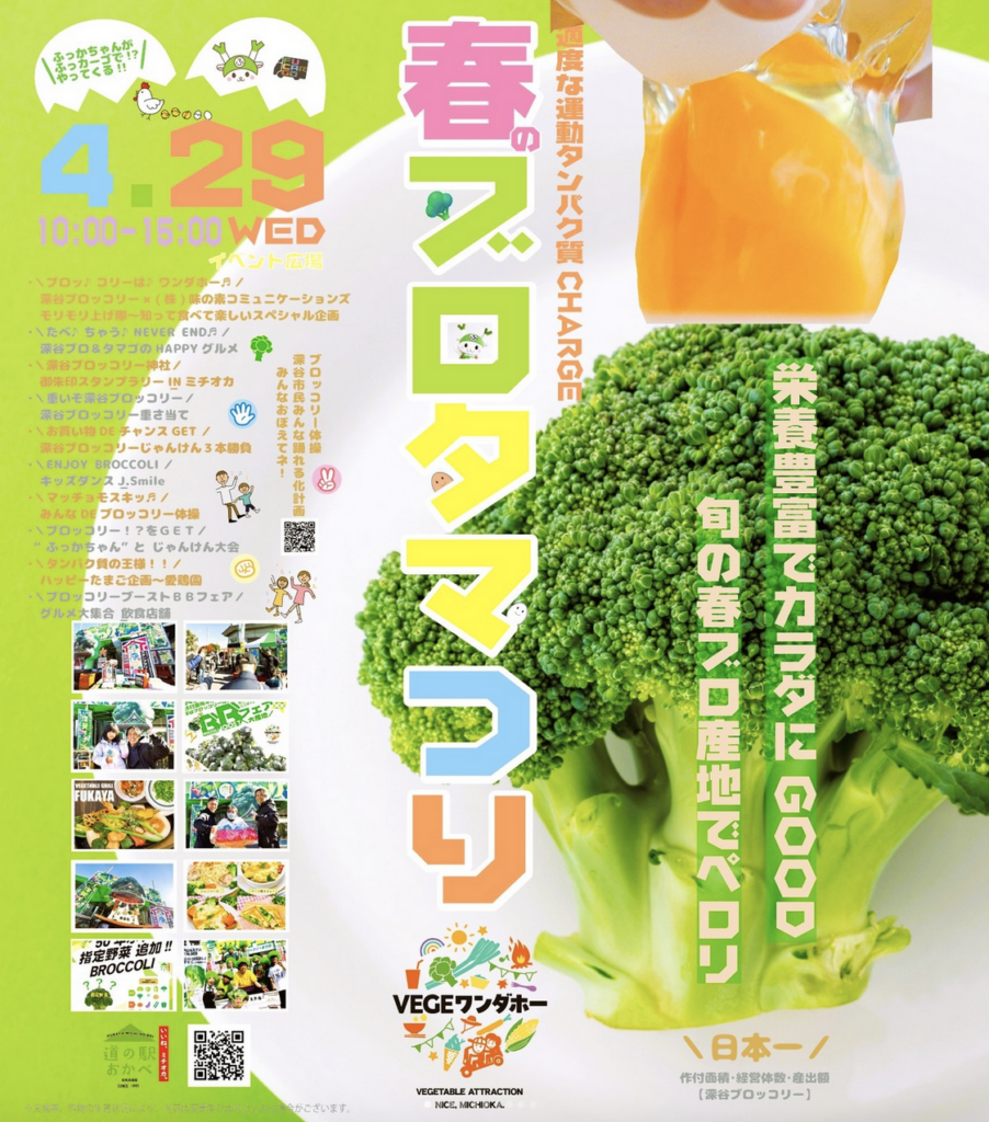栄養豊富で、どの年代の人にも積極的に取り入れていただきたい「深谷産ブロッコリー」を楽しいイベントを通して堪能してみてください😸