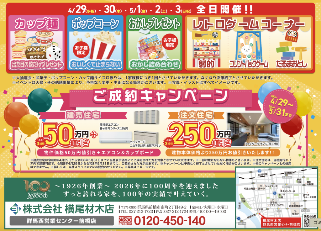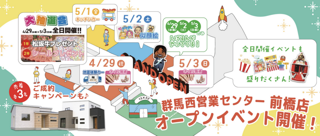 横尾材木店が「群馬西営業センター前橋店グランドオープン記念イベント&総額1億円プレゼントキャンペーン」を開催!