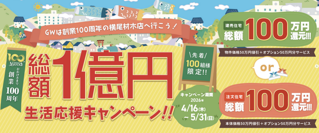 総額1億円!先着100名様限定GW生活応援キャンペーン2026を開催中です🎉