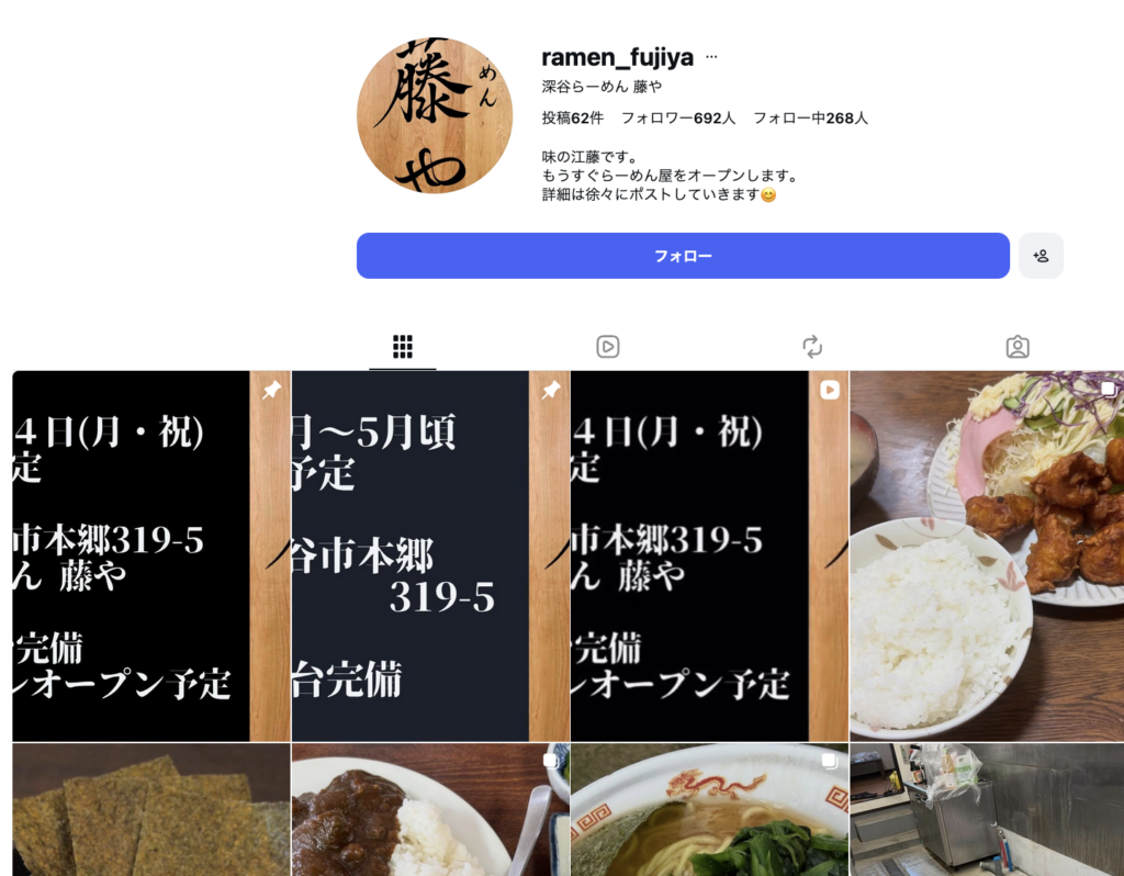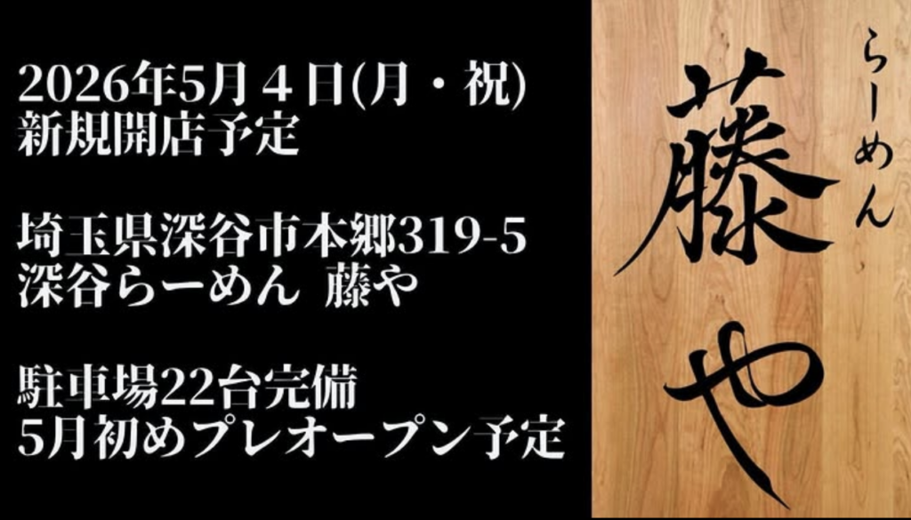 深谷市本郷の「深谷らーめん 藤や」のオープン日が決まったみたい。