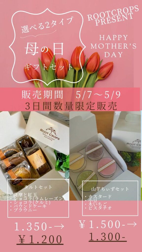 また『ルートクロップ』では、2026年5月7日(木)~9日(土)まで 3日間限定母の日スイーツギフト2026」を販売いたします❤️