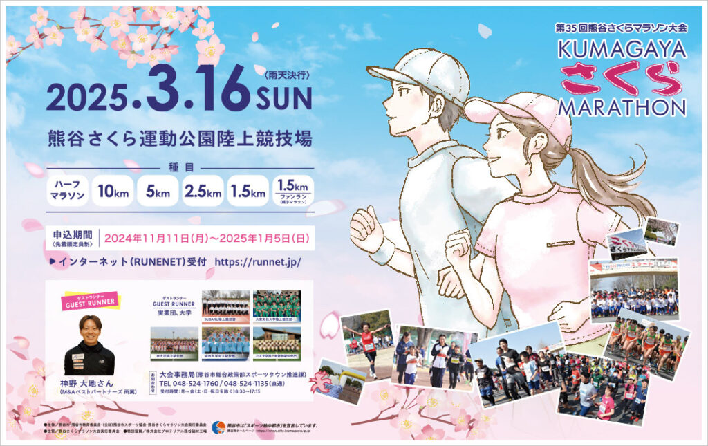 3月16日(日)に「第35回 熊谷さくらマラソン大会」が開催されるみたい。交通規制等の案内はコチラ