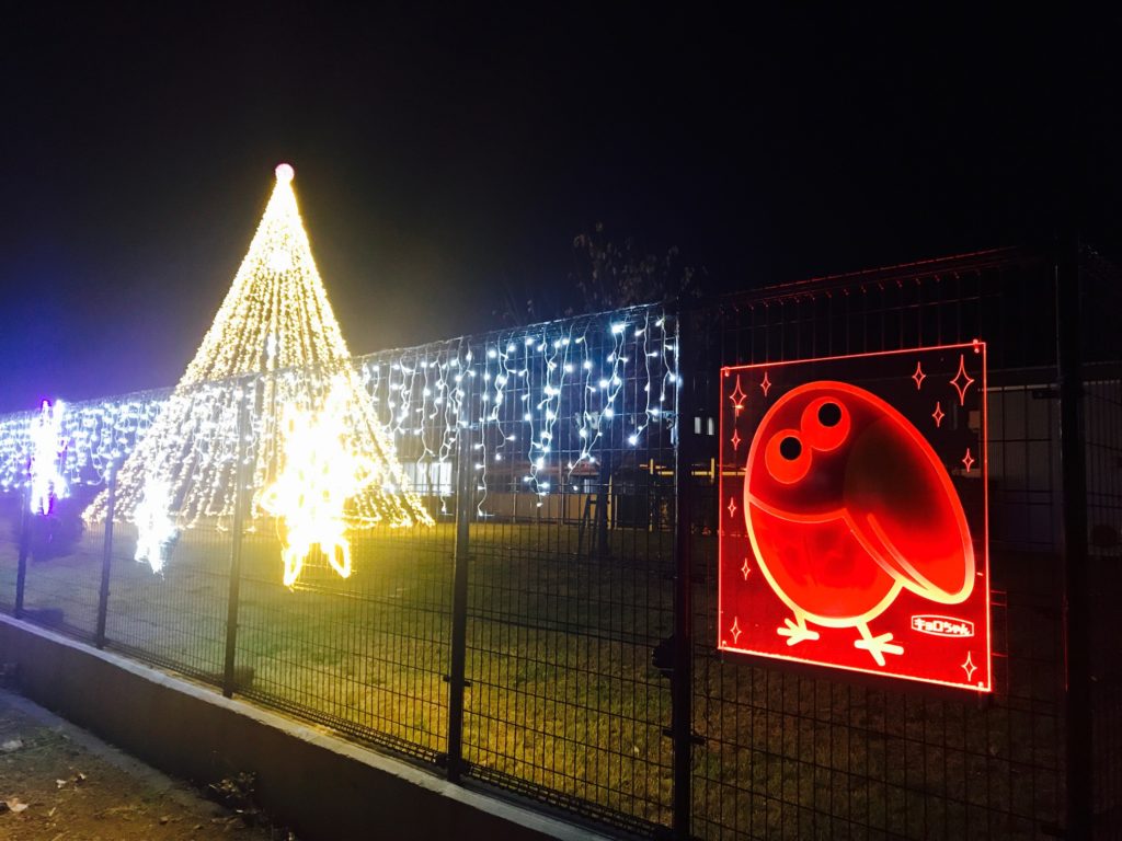 高崎市倉賀野工業団地内にある「高崎森永株式会社」のイルミネーション。【さいつうフォト】