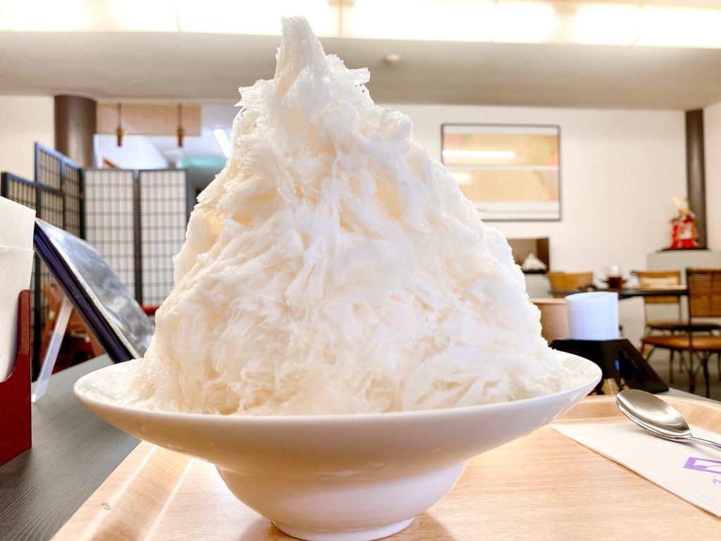 熊谷市久保島にある「けずりひ 島田 少納言.G(人形の島田)」のかき氷『白みつミルク』【さいつうグルメ】