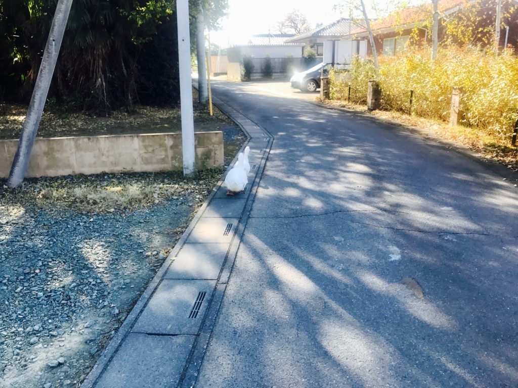 上里町で見かけたお散歩するアヒルさん達。【さいつうフォト】