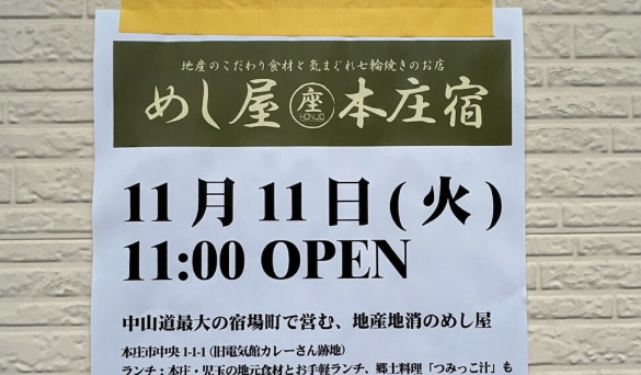 本庄市中央に「めし屋 本庄宿」がオープンするみたい。「電気館カレー」があったところ。