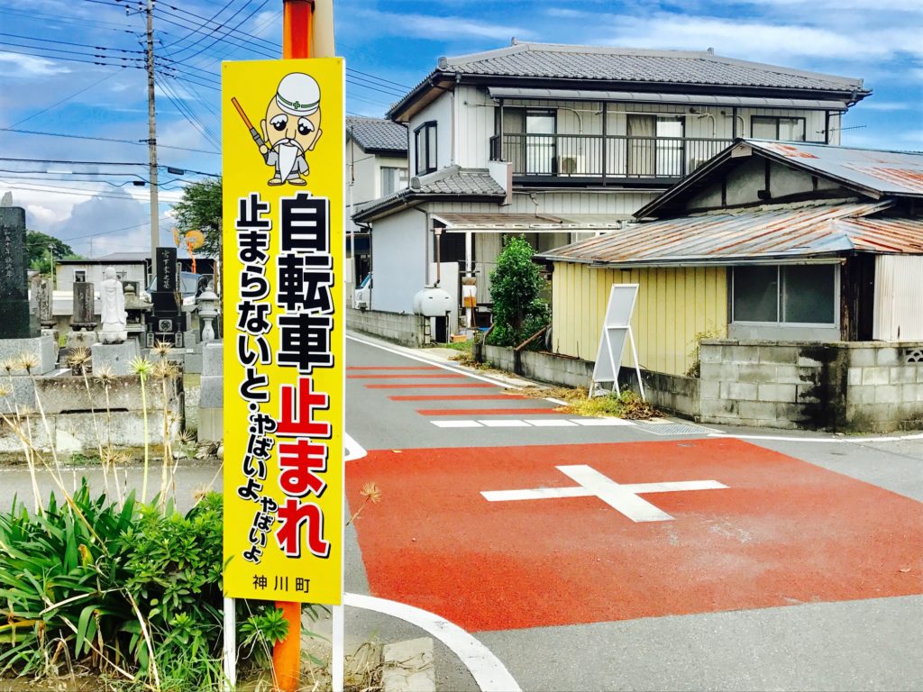 出川哲朗の口癖で注意喚起をする看板が設置されてる。神川中学校の近く。【まち情報】