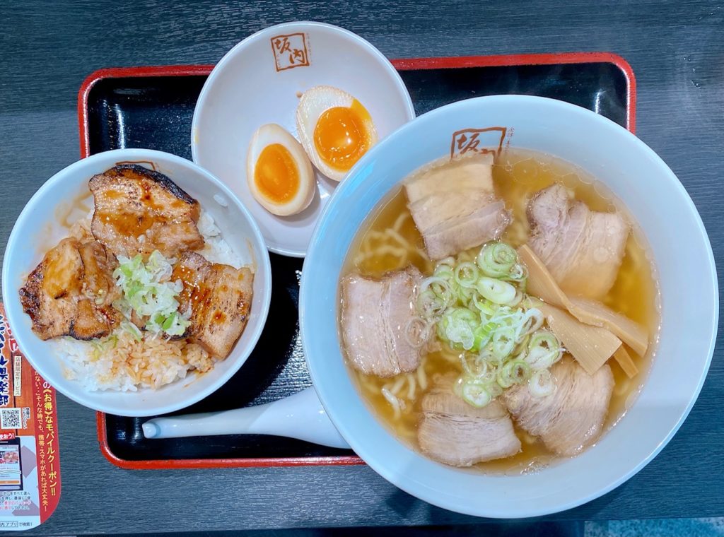 本庄市本町にオープンした「喜多方ラーメン坂内(ばんない)本庄店」の『喜多方ラーメン炙り焼豚ご飯セット』【さいつうグルメ】