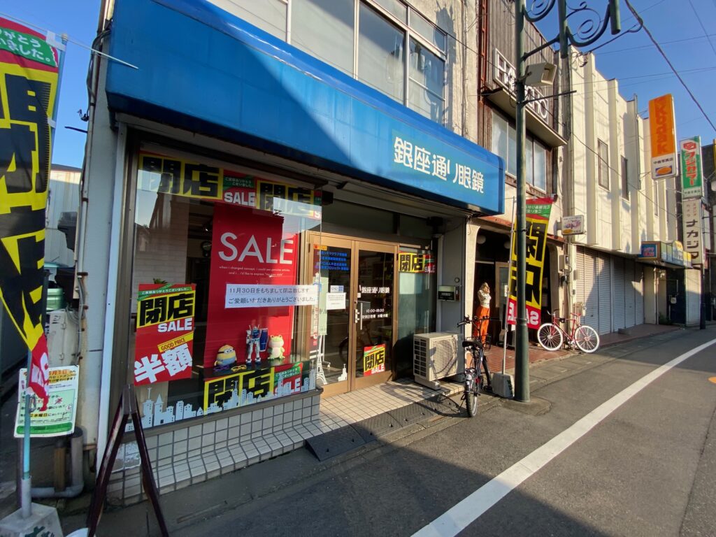 本庄市銀座にあるメガネ店「銀座通り眼鏡」が閉店するみたい。閉店セール開催中。