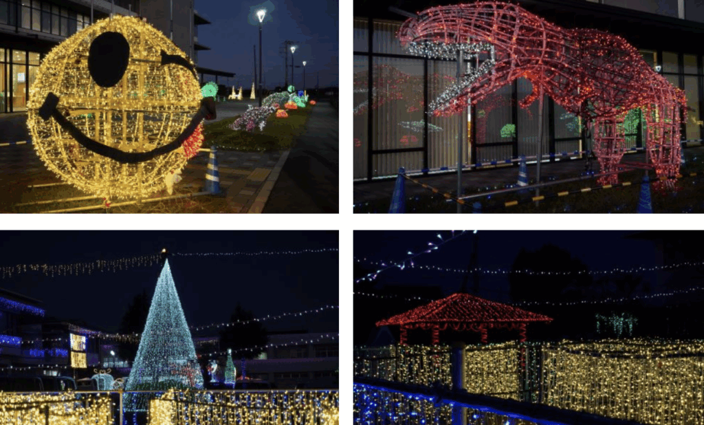 神川町役場南側・中央公民館前駐車場でイルミネーション点灯中。2026年1月11日(日)まで
