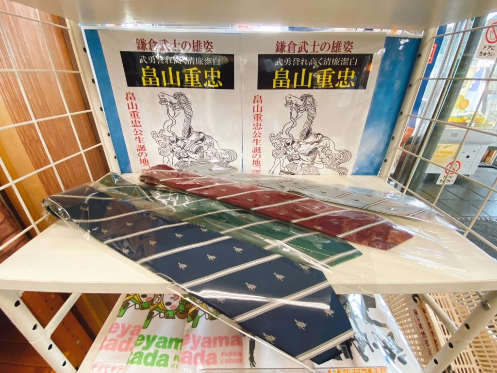 大河ドラマ『鎌倉殿の13人』にも登場する深谷出身の武将 『畠山重忠』が刺繍されたネクタイが販売されてる。