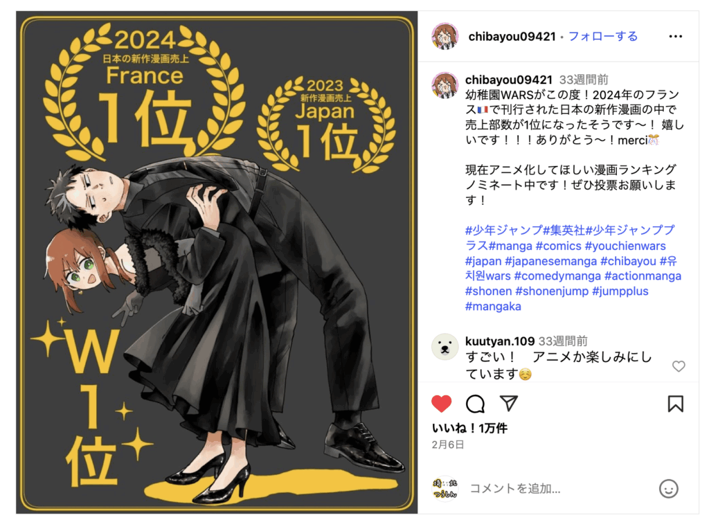 「幼稚園WARS」は国内はもちろん、海外でも高い人気があり、2024年にはフランスで刊行された日本の新作漫画の中で売上部数1位を記録しています!