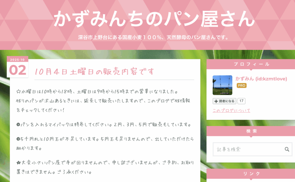・販売2日前には「かずみんちのパン屋さん(Hatena Blog)」