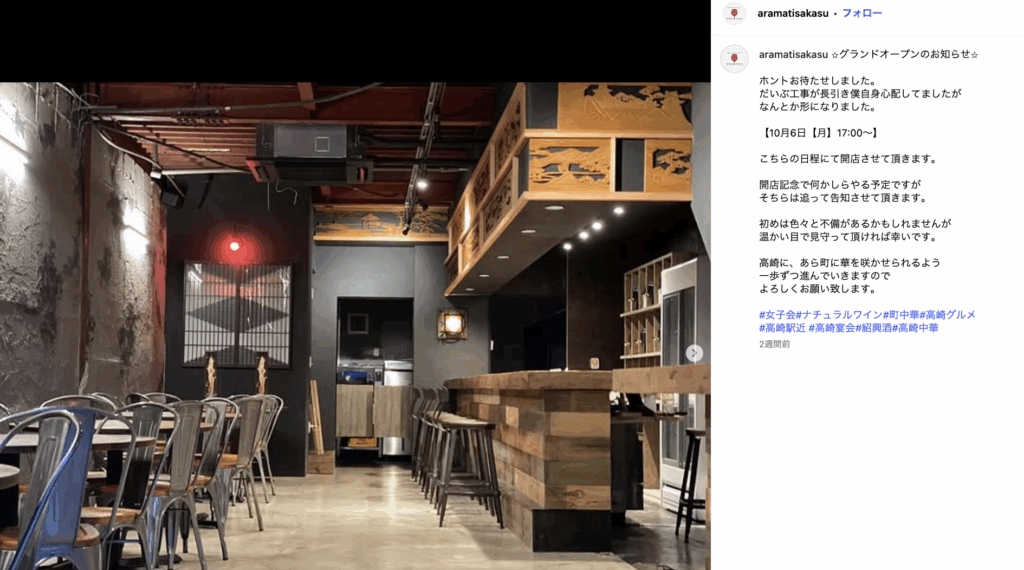 高崎市あら町に中華ビストロ「アラマチサカス」がオープンしたみたいです。