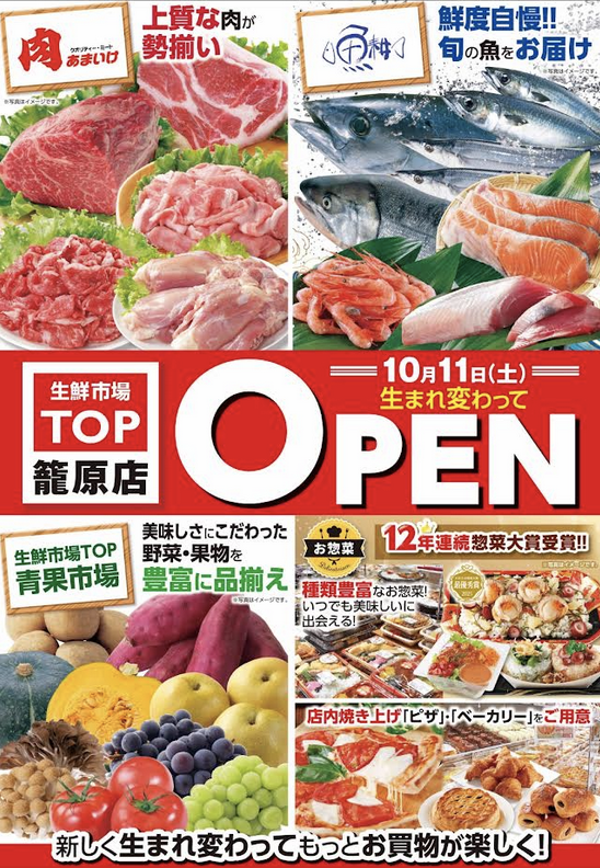 熊谷市新堀新田にあった「マミーマート籠原店」が「生鮮市場TOP 籠原店」としてリニューアルオープンしたみたいです。