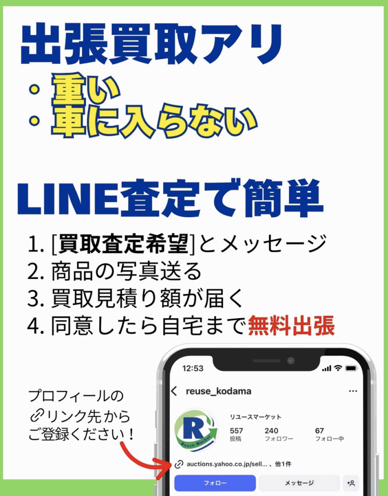 また、重たい物がある方や忙しい方は「LINE査定」がおすすめです💡