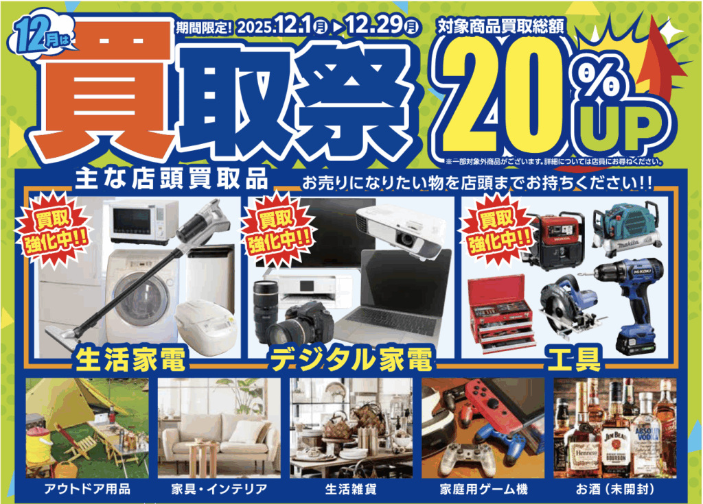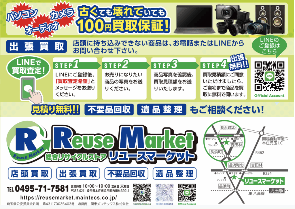 本庄市児玉町にある総合リサイクルストア「リユースマーケット」が2025年最後の大型イベント「買取祭2025」を開催します✨