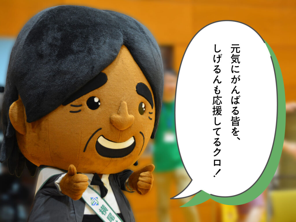 「横尾材木店」のゆるキャラ「しげるん」ですクロ〜✌️