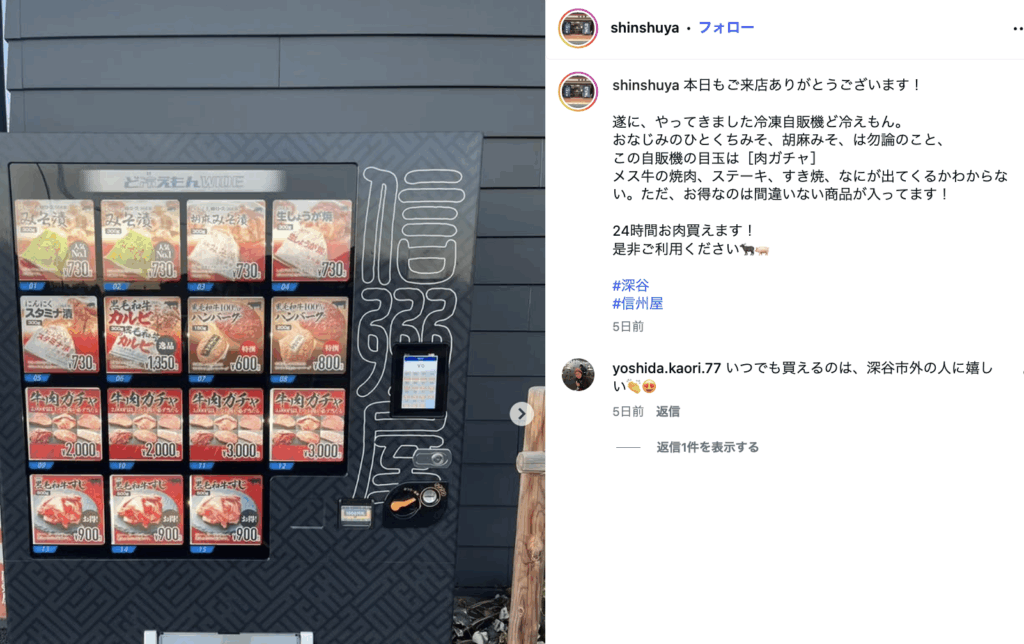 深谷市にある精肉店「信州屋」に冷凍自販機が設置されたみたい。