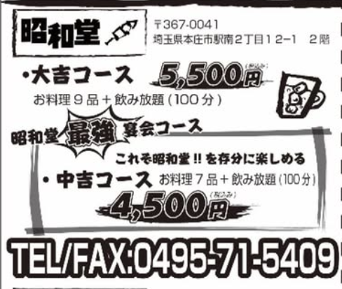 ◆本庄駅近くで飲み会をやりたい!