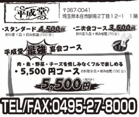 ということで、本庄の人気店「昭和堂」と「平成堂」の宴会コースをご紹介します✨