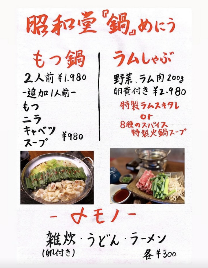 【昭和堂の鍋メニュー&新作メニュー】