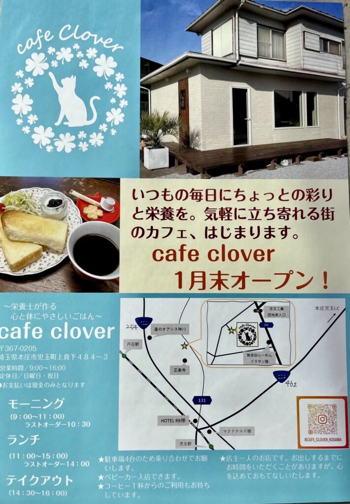 2026年1月30日(金)に本庄市児玉町上真下に栄養士が作るモーニングとランチが味わえる「cafe clover」がオープンしたみたいです。