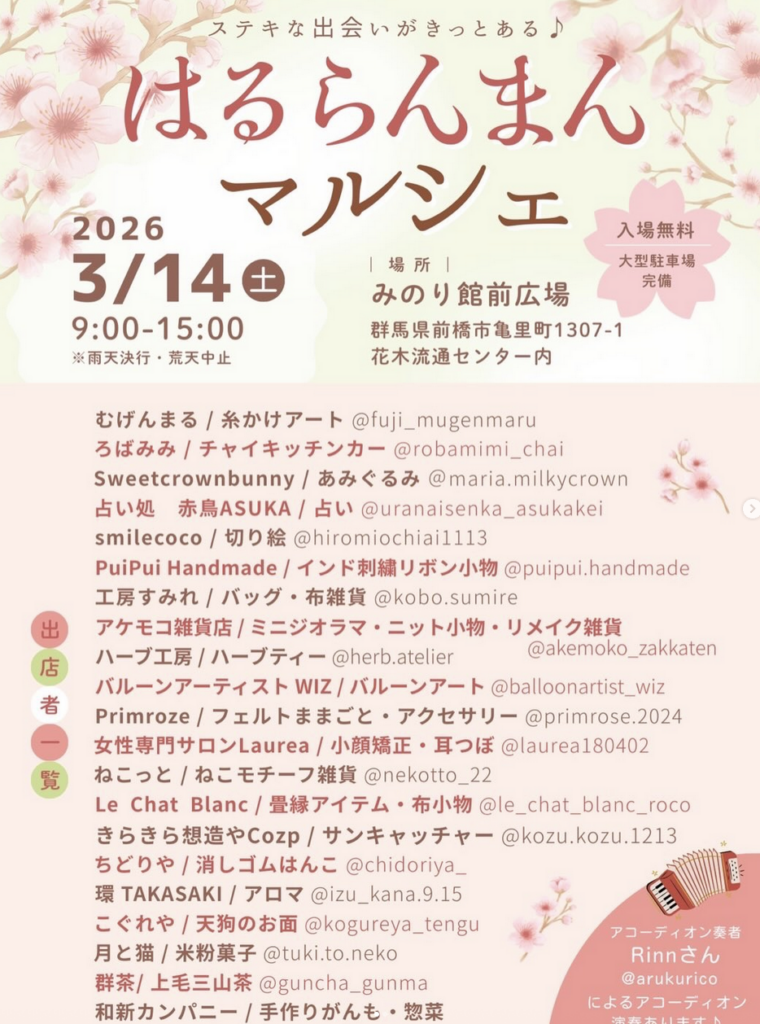 3月14日(土)・15日(日)に埼北エリア周辺で開催されるイベントまとめ〈群馬県〉【イベント情報】