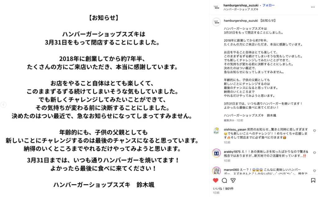 2026年3月31日(火)をもって閉店するそうです。