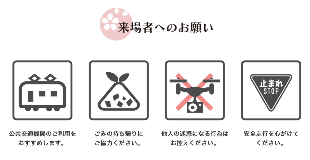 ※さくら祭開催期間中、周辺道路の混雑緩和のため、土日および満開後の金曜日は有料とさせていただきます。ご理解とご協力をお願いいたします。