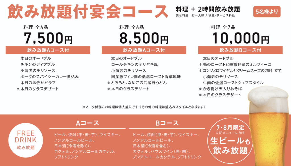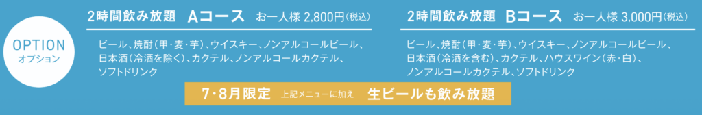※生ビール飲み放題の特典はフリードリンクご利用のお客様に限ります