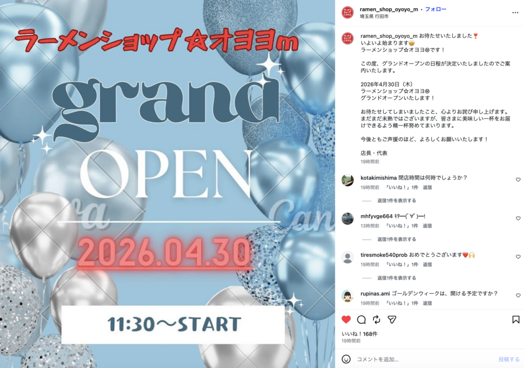行田市富士見町の「ラーメンショップ☆オヨヨⓂ︎」のオープン日が決まったみたい。