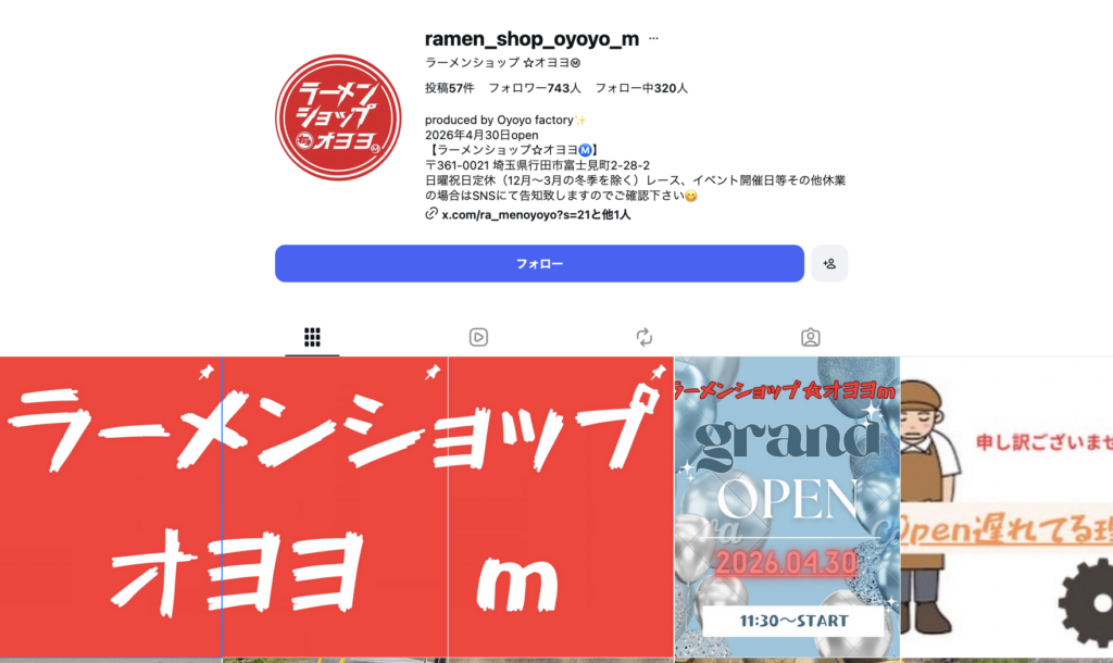 行田市富士見町に開店する「ラーメンショップ☆オヨヨⓂ︎」のオープン日が決まったみたいです。