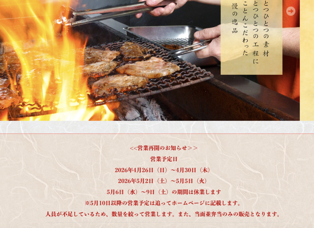 2026年4月26日(日)から数量限定で並弁当のみ販売するそうです。