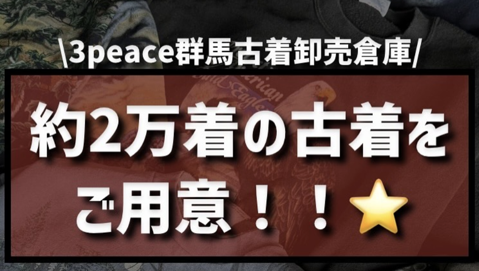 高崎市中尾町に「3peace群馬古着卸倉庫」がオープンしたみたい。在庫古着数は2万着だって。