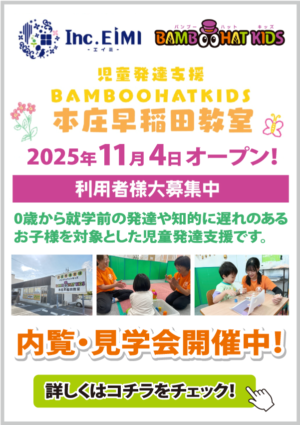 児童発達支援教室「バンブーハットキッズ深谷駅前教室」が新年度の児童募集をスタート!「保護者説明会・体験会」は毎日(平日)開催中です!【PR】